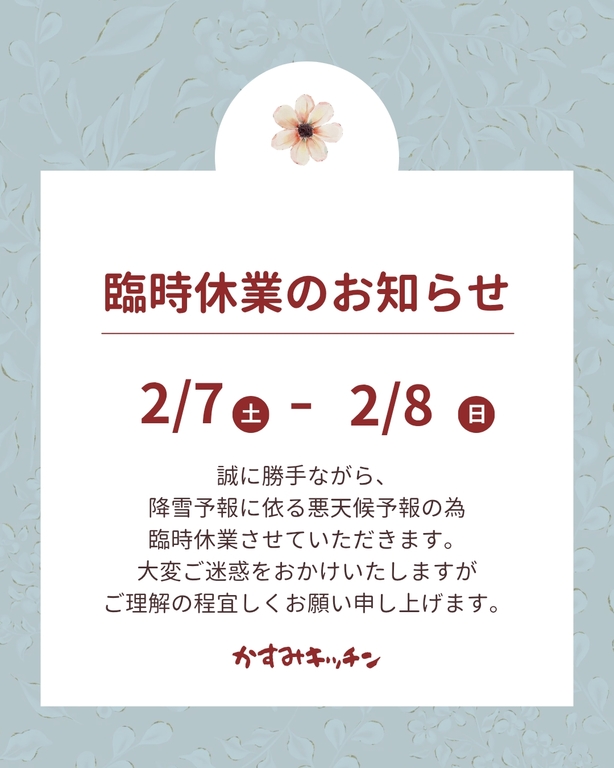 臨時休業のお知らせ